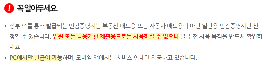 🚨 주의사항: 정부24에서 인감증명서 발급 시, 프린터가 미리 연결되어 있어야 합니다. (모바일 신청 불가)