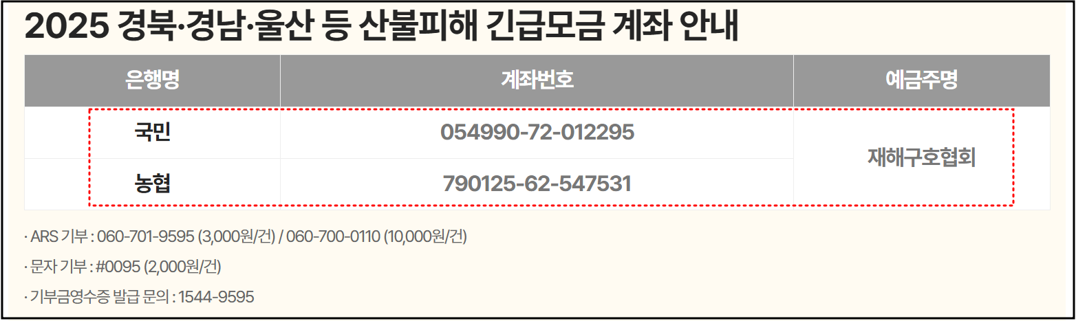 2025 경북·경남·울산 등 산불피해 긴급모금 - 모금기간:
