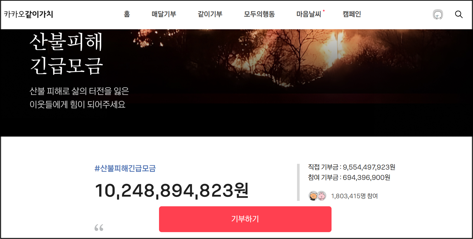 👉 카카오 산불피해 모금 바로가기