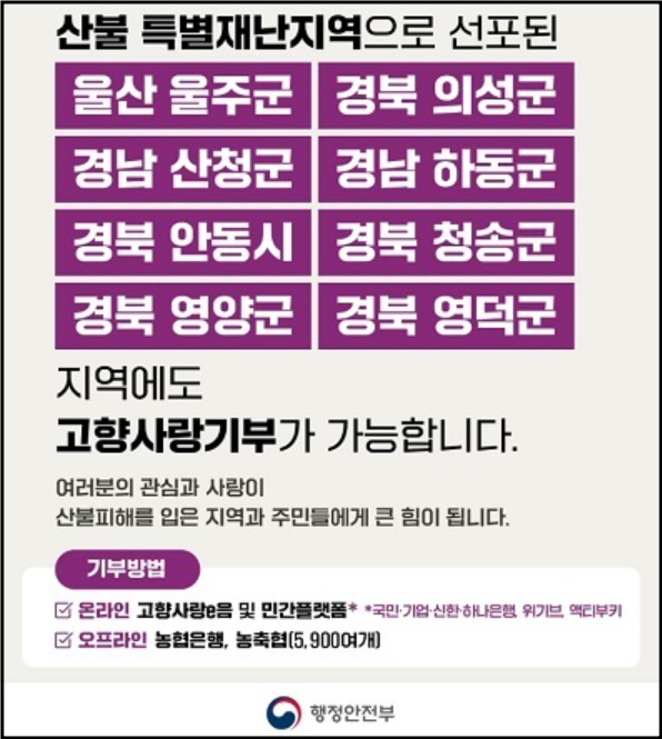 2-4. 위기브 고향사랑 기부 - 산불 #산불피해 # 긴급구호 지정기부 가능