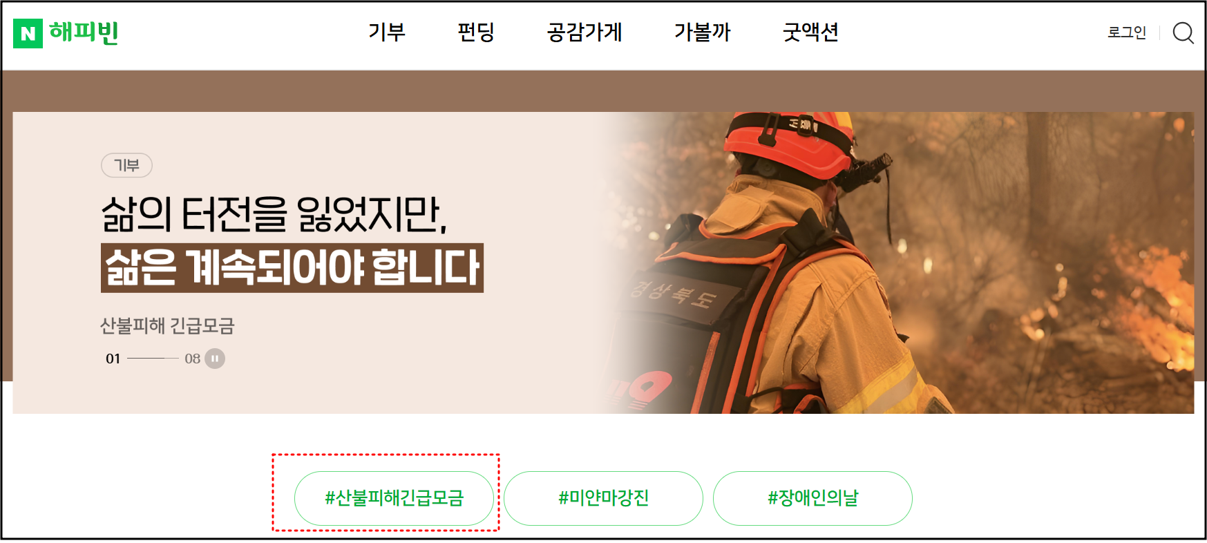 - 캠페인명: #산불피해긴급모금