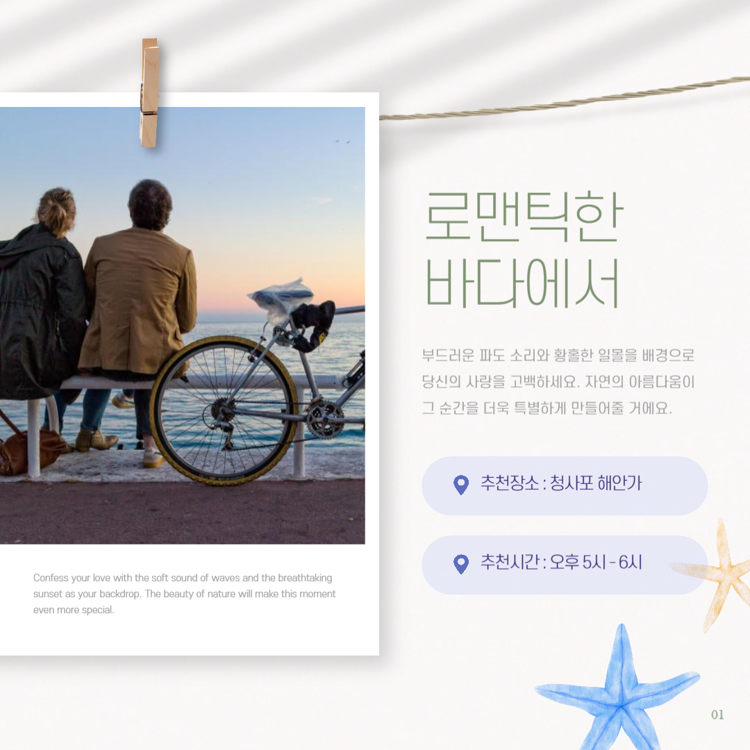 파도 소리가 감성을 자극해 자연스럽게 고백하기 좋은 분위기를 연출할 수 있어요.