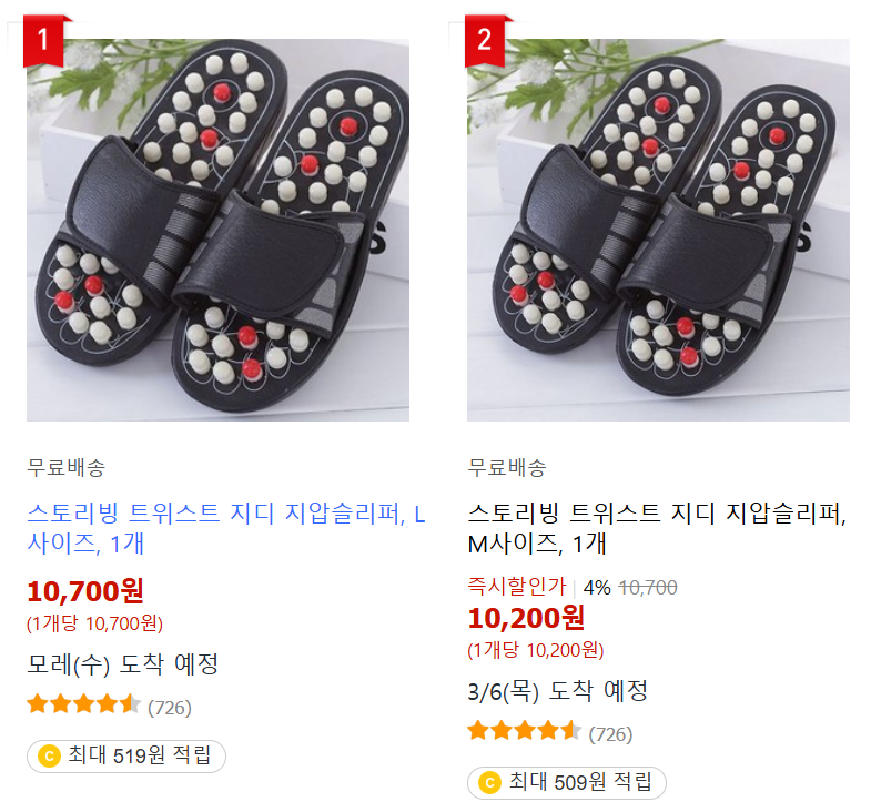 제품명 : 스토리빙 트위스트 지디 지압슬리퍼