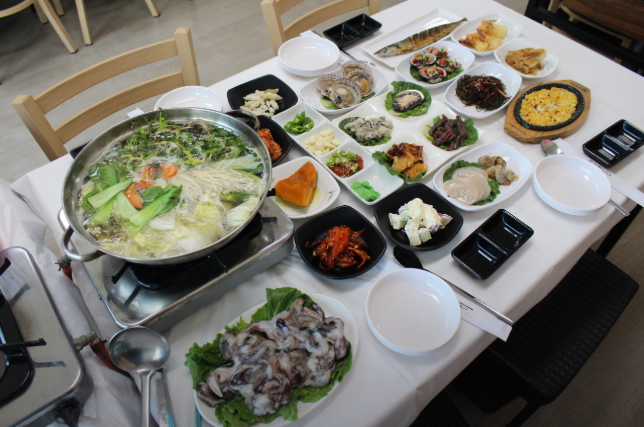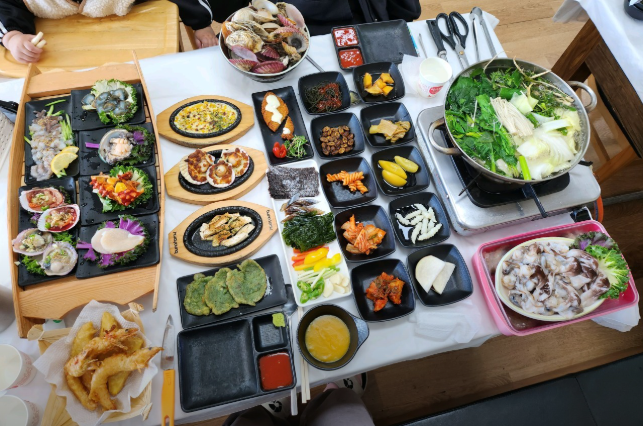 - 푸짐한 해산물과 맛있는 밑반찬의 조화