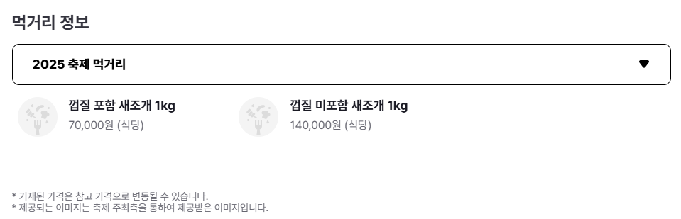- 주요 프로그램: 새조개 샤브샤브 시식회, 해산물 직거래 장터, 지역 특산물 판매