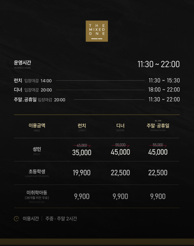 | 구분 | 평일 런치 | 평일 디너 / 주말 / 공휴일 |