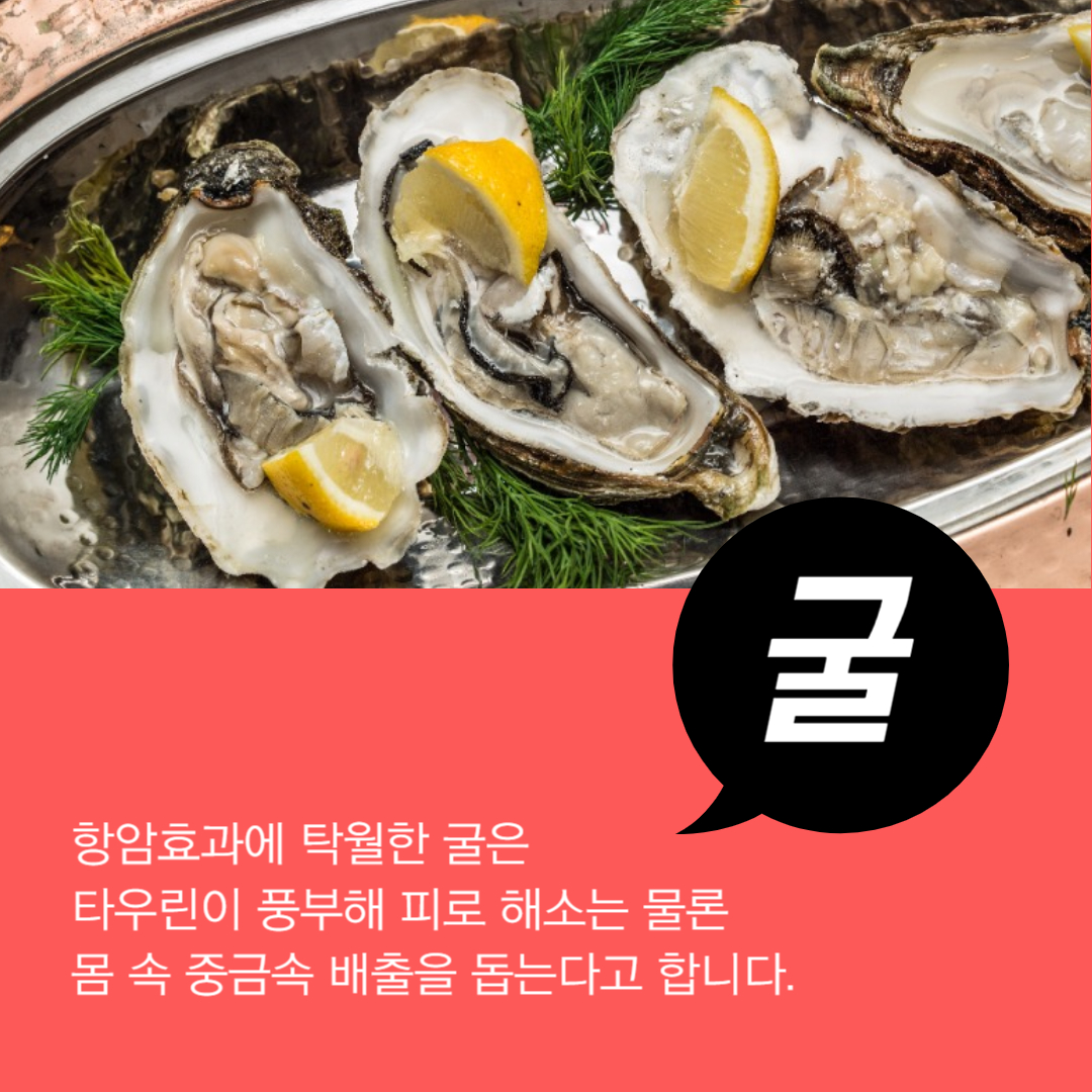 - 폐 기능을 보호하고 해독 작용을 돕는 대표적인 해산물.