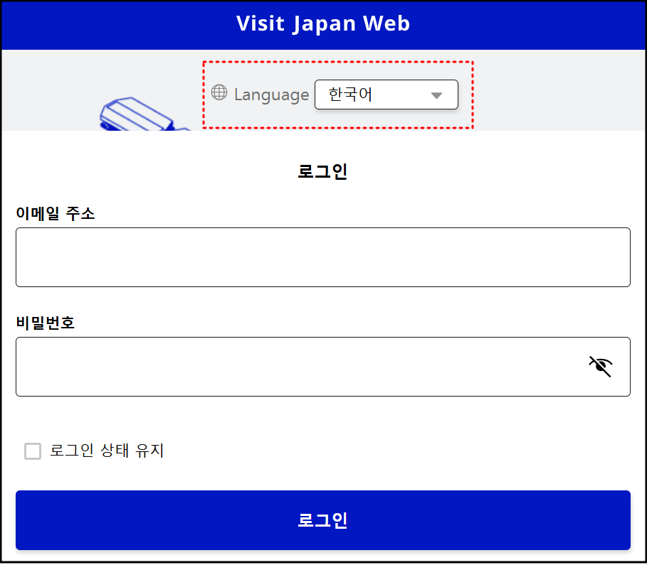 - Visit Japan Web 로그인 화면에서 로그인합니다.