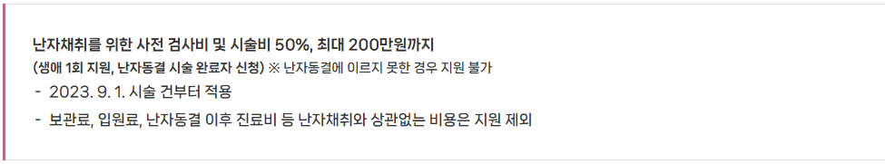 4) 난자동결 지원 내용 및 금액: 최대 200만 원