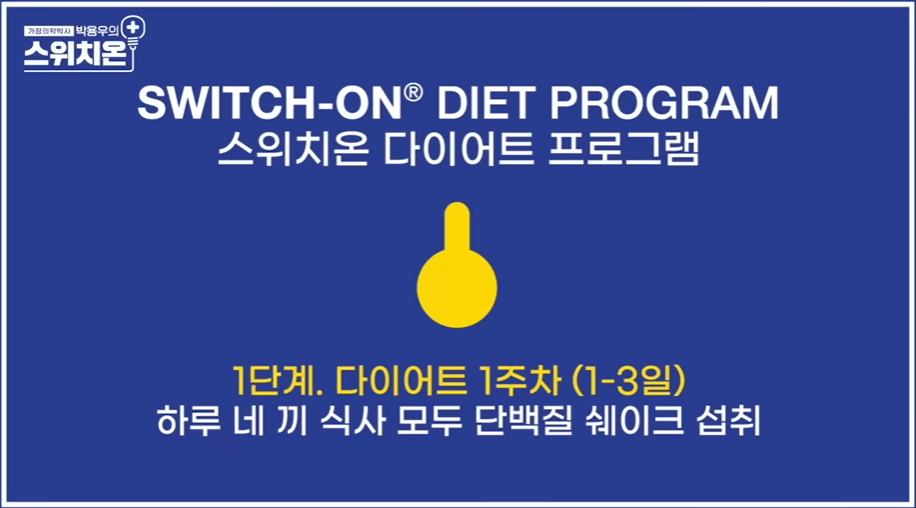 단백질 쉐이크, 스위치온 다이어트 식단, 간헐적 단식 등의 원칙을 지키면서 건강하게 다이어트를 진행해 보세요!