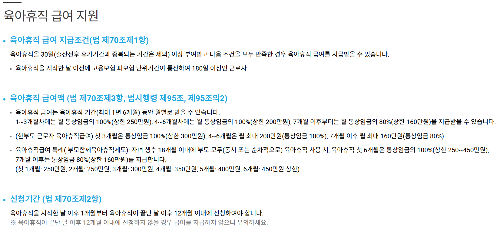 ✅ 가장 최신 육아휴직 급여 정보는 고용노동부 공식 홈페이지에서 확인 가능