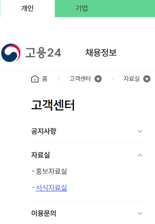 - 고용24 홈페이지 접속