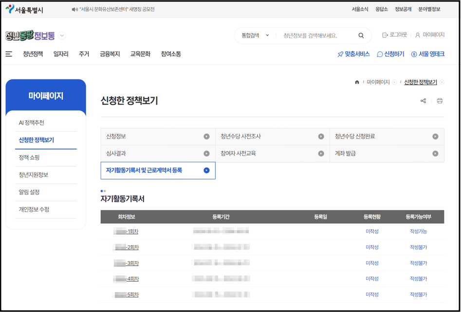 📢 서울 청년수당 신청은 '청년몽땅정보통'에서 신청 가능 😊