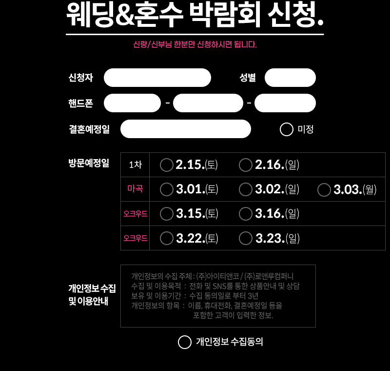 - 방문 고객 전원 사은품 증정 (신랑·신부 동반 입장 시 추가 혜택 제공)