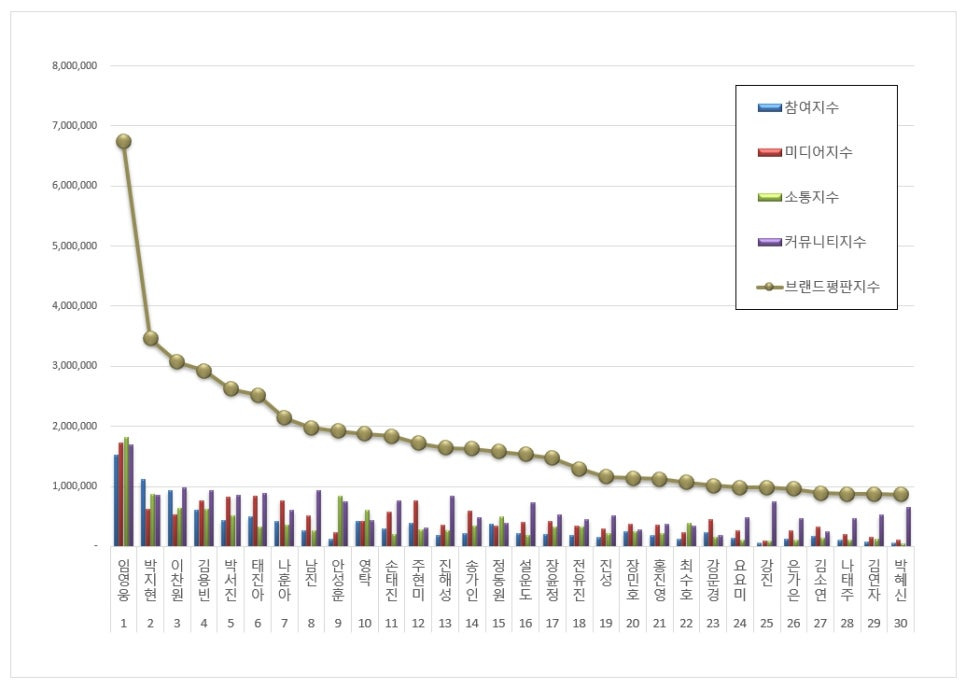 🏆 1위 - 임영웅 (브랜드평판지수 랭킹 1위: 6,742,064 | 1월 대비 🔼 23.56% 상승)