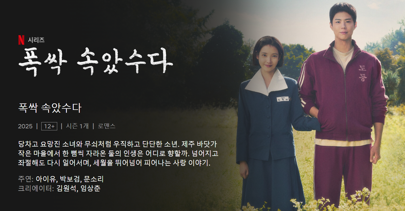 "폭싹 속았수다"는 한 여성이 꿈과 현실, 가족과 사랑 사이에서 선택을 해야 했던 이야기입니다. 넷플릭스에서 3월 7일 공개된 "폭싹 속았수다", 꼭 시청해보세요!