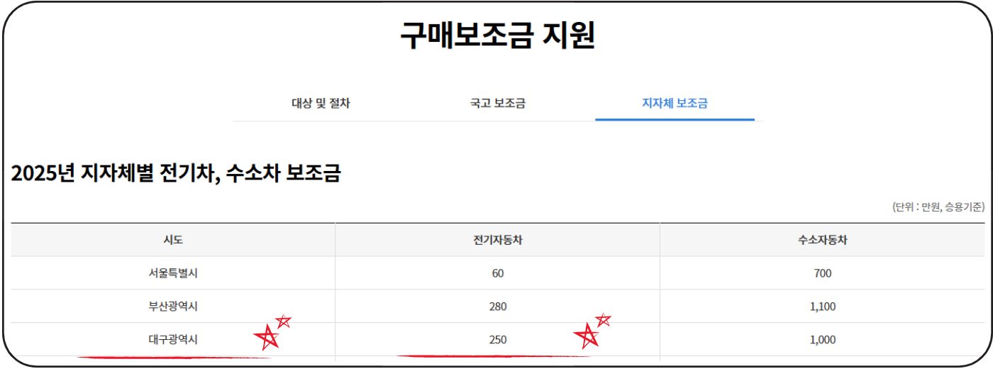 2. 대구 전기차 보조금 지원 금액 : 전기차 보조금 조회