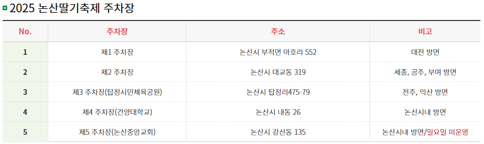 2025 논산 딸기축제 교통 & 주차 정보