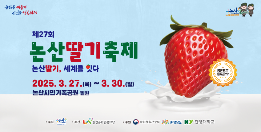| 2025 논산딸기축제 개막식 축하공연 | 3/27(목) 18:00시 | 논산시민 가족공원 주무대 |