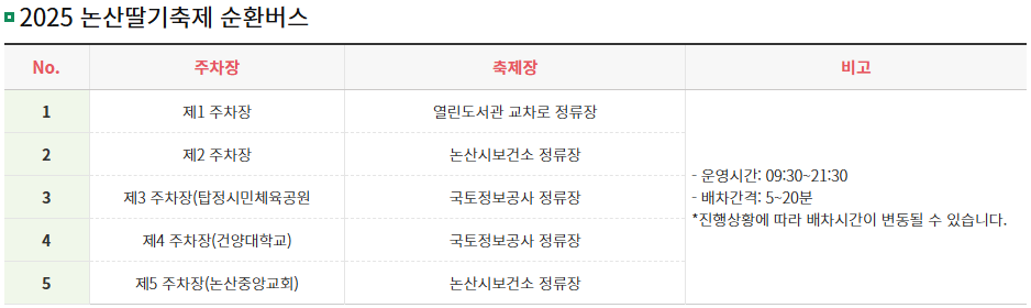 1️⃣ 논산 딸기축제 순환버스 & 주차 안내